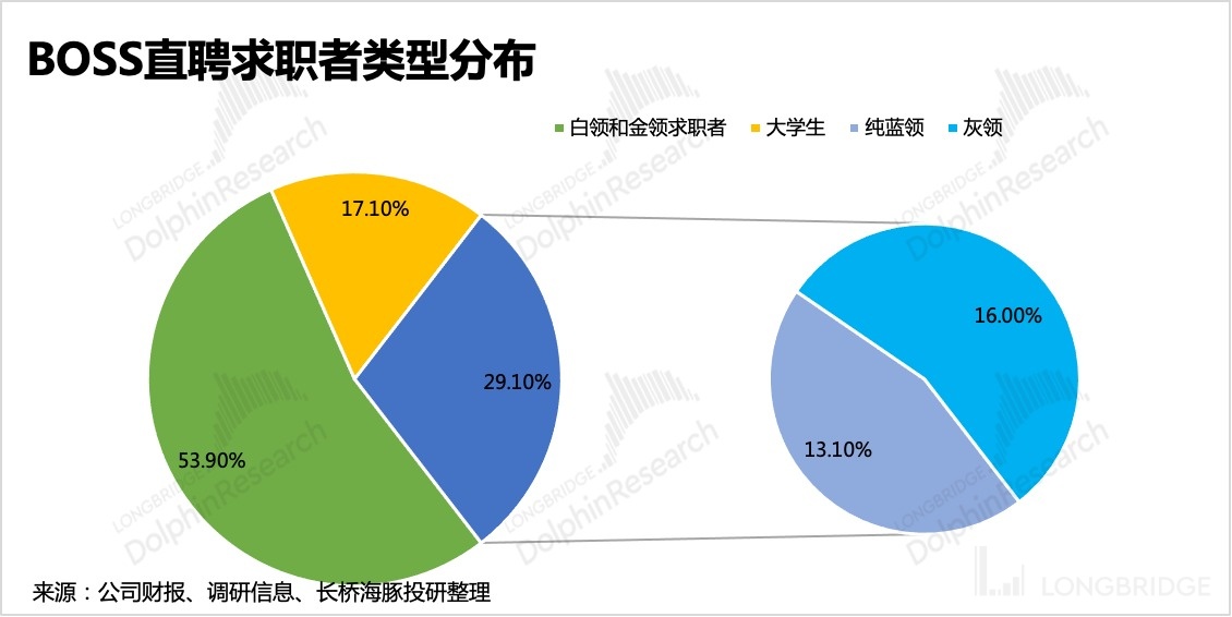 但纯蓝领也是 BOSS 直聘相对重要的长期增长动力,58、快手的进击和角逐无疑是想要瓜分未来 BOSS 直聘的潜在市场份额。
