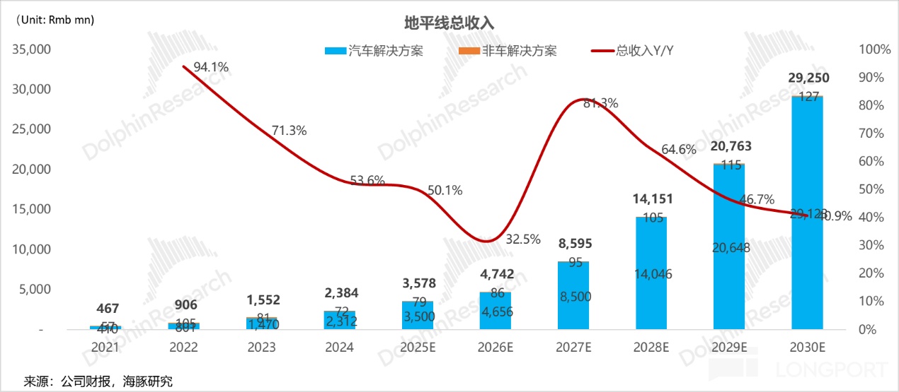 在此结构下,海豚君预计公司芯片平均售价(ASP)将同比提升 16.2% 至 492 美元。基于约 550 万套的出货量指引,预计地平线 2025 年产品解决方案业务收入为 27.1 亿元人民币,同比增长 57%。