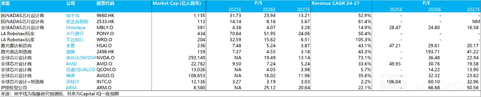 基于此,海豚君预测地平线 22026 年总收入 47.4 亿元,对应地平线 2026 年 P/S 倍数约为 24 倍。对比同行还在高位(黑芝麻 26 年 P/S 为 8 倍)。