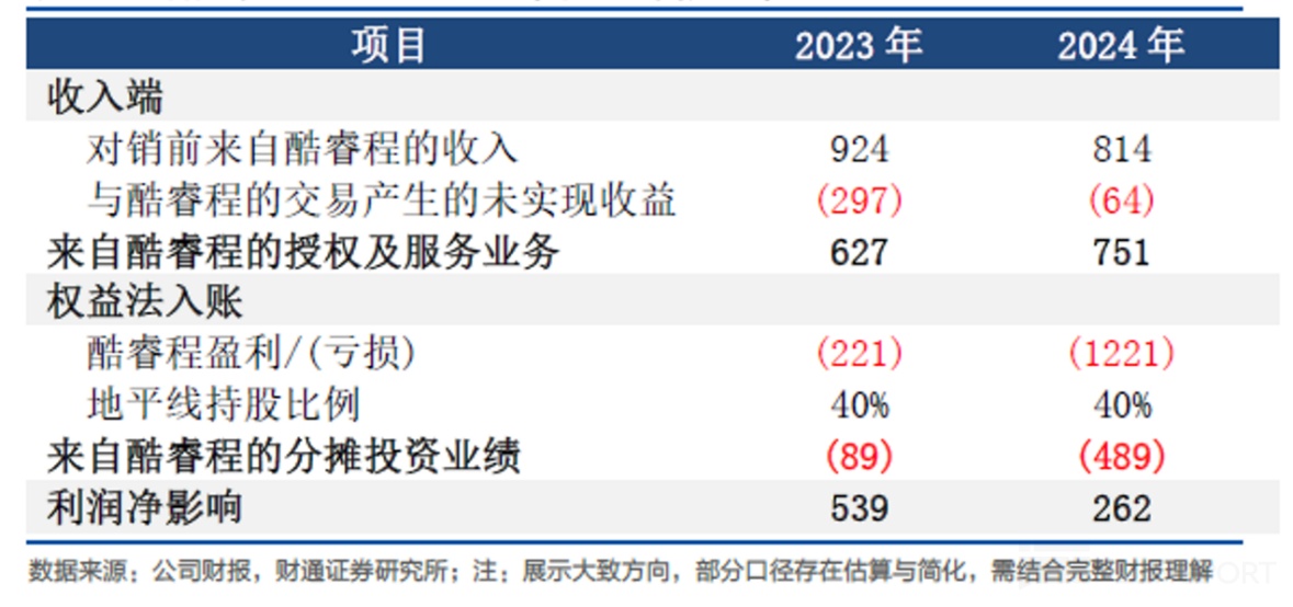 2023 年及 2024 年,酷睿程分别贡献了 6.3 亿/7.5 亿收入,占整体服务业务收入的比重为 65%/46%。