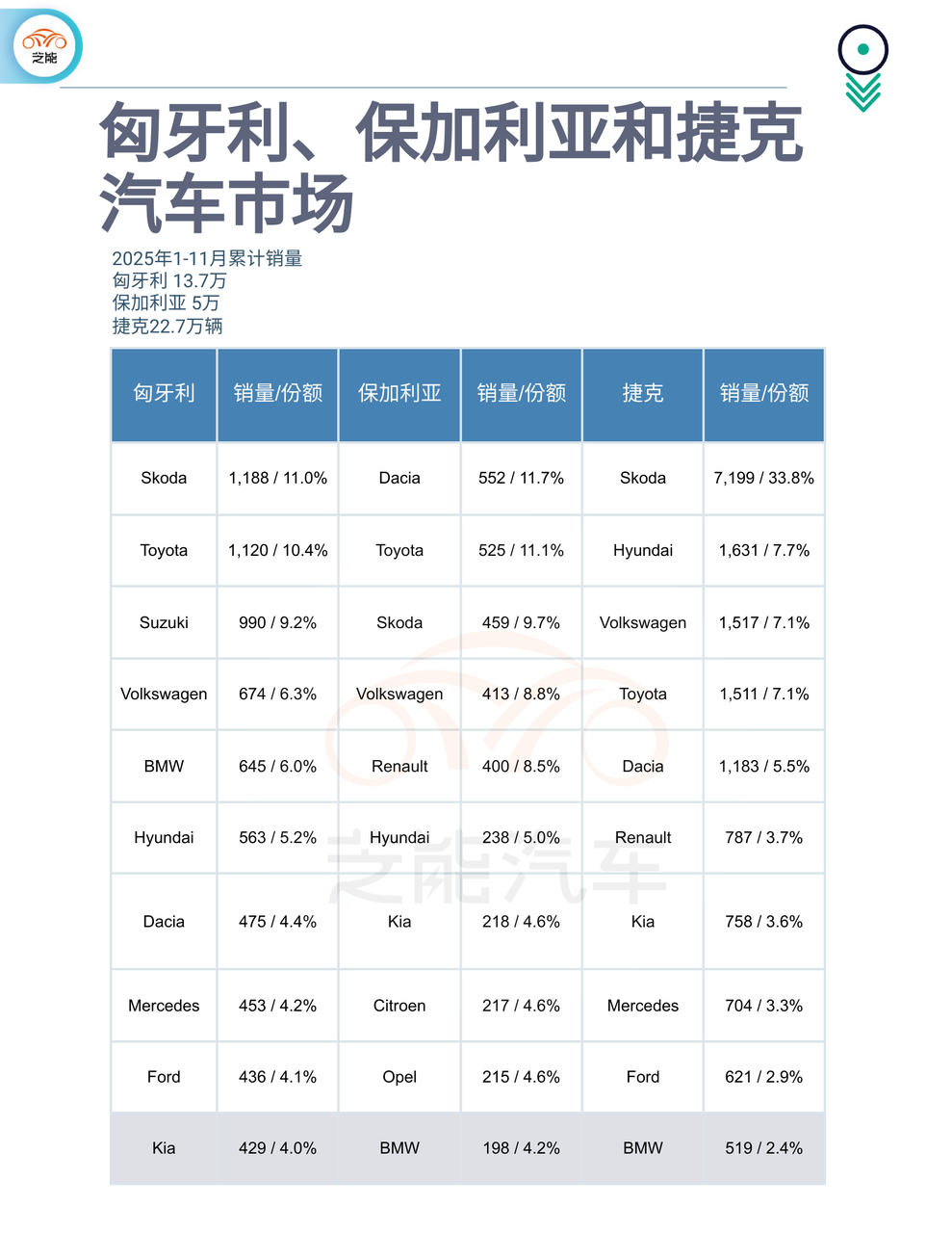 东欧车市 | 捷克、匈牙利、保加利亚 2025 年 11 月:市场怎么开拓?