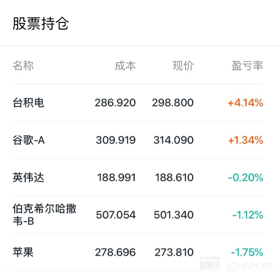 - 目前的持仓不是遇到巨大风险或者回撤的话不会卖,如果有好的价格会继续加仓。此外还在考虑找机会买一些$特斯拉(TSLA.US) 和$亚马逊(AMZN.US) ,但是特斯拉价格有点高,还没考虑好,亚马逊的业务很扎实,感觉长持有机会。别的公司我不是特别懂,不懂的不会买。