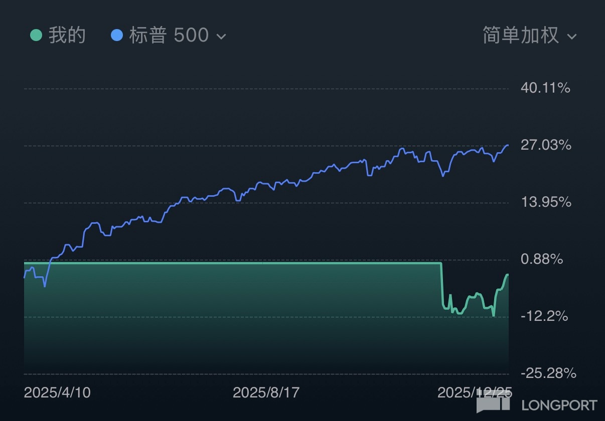 写一份总结,以后可以翻出来看看。先放收益图吧,最近持仓的股票有反弹,到 12 月 25 日收益是-2.67%。