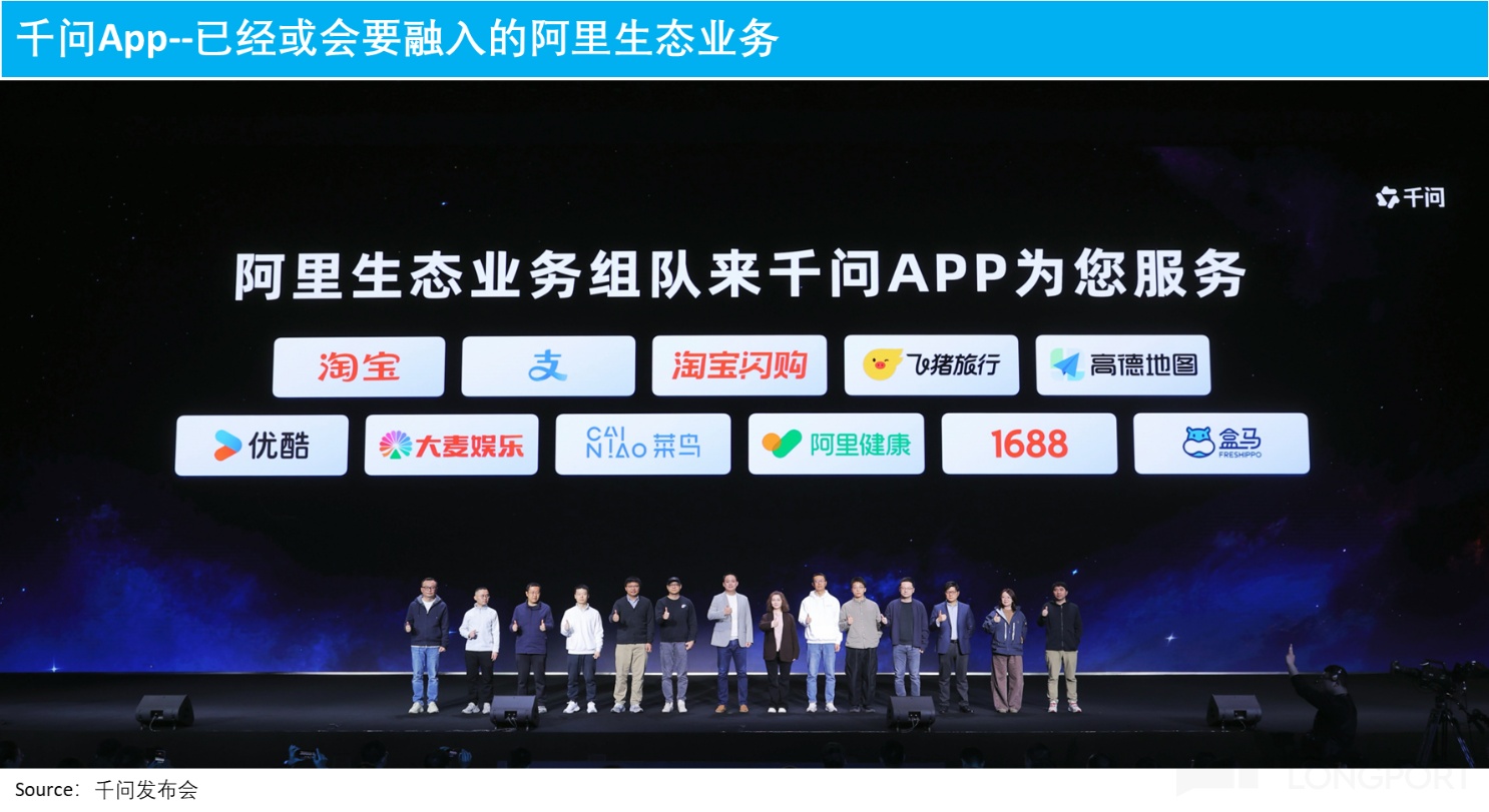 3)25 年 11 月中旬,阿里重新包装推出了千问 APP,且近期明显起量迹象,日前官宣全渠道(包括 App、Web 和 PC)月活用户过 1 亿。