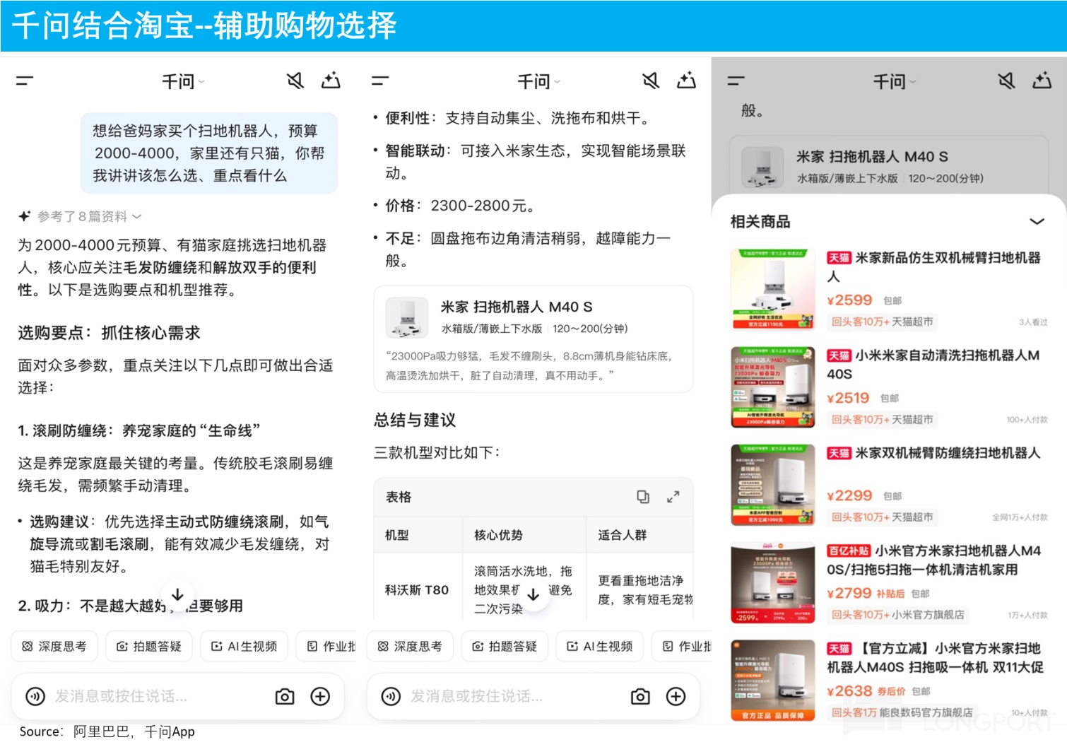 模型能力上丰富的布局 + C 端业务上同样最丰富的布局,正是这两者合一才让千问能够后发先致,抢先上线生活消费向的 AI 助手。