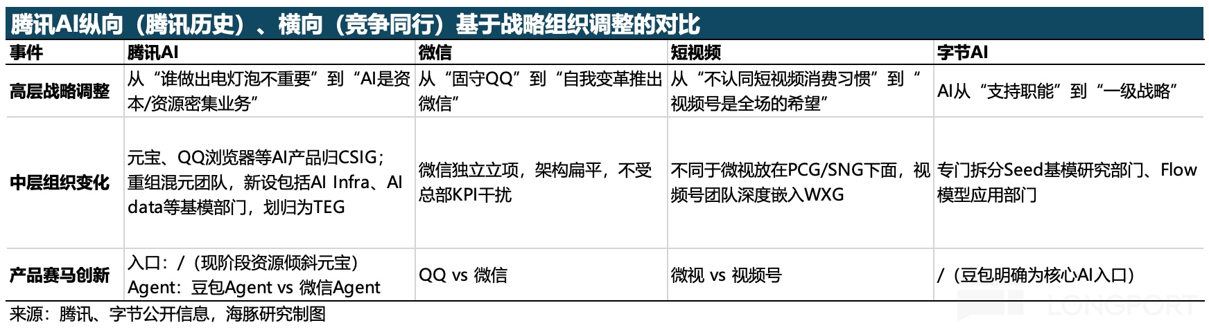 腾讯对比字节,可以说在专业负责人引进和组织架构调整上,都慢了一步。但无论是模型竞争还是产品竞争还都在上半场,现在追赶也并非来不及。