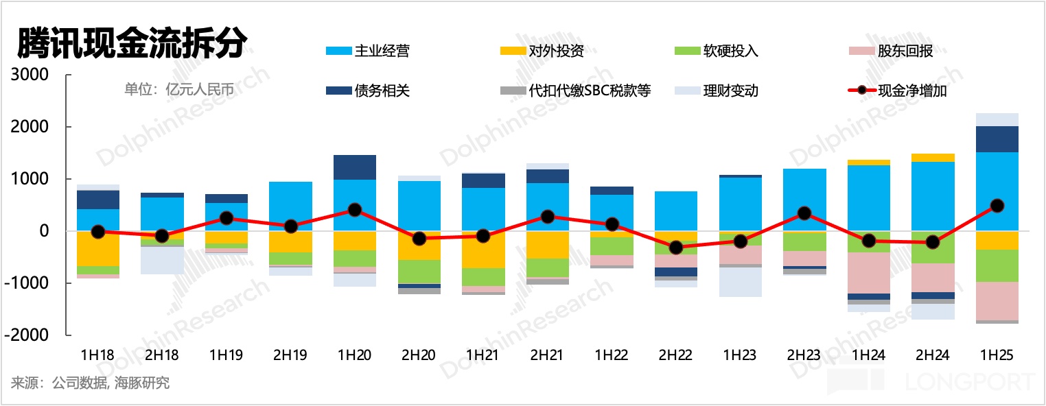 资本开支如提升明显,势必影响回购预算。但腾讯在资金配置上,一直相对稳健(现金净变动基本维持在平衡线上方,或紧贴平衡线下方)。关于回购和投资,管理层主要遵循 ROI——如果业务扩张未来能够带来更多的收益,那么就会加强投入而非单纯在二级市场回购。面对 AI 这种史诗级产业机遇,尤其是今年是产品渗透的关键年,作为腾讯长期投资者而言,应该更乐意看到腾讯积极投入业务扩张来 “以攻为守”。