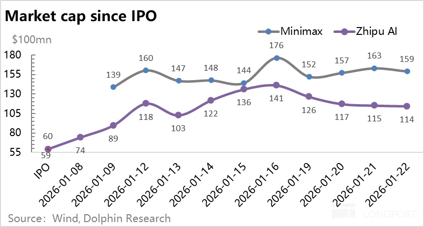 26 年初 ChatGPT 发布三年之际,中国两大 AI 大模型创业公司$MINIMAX-WP(00100.HK) 和$智谱(02513.HK) 几乎同时,均以大约 60 亿美金的估值上市,且上市后都以暴涨,并带动整个 AI 应用的普涨行情。但同时,扒开两个大模型公司的报表,都是 “亏无止境” 的面相。