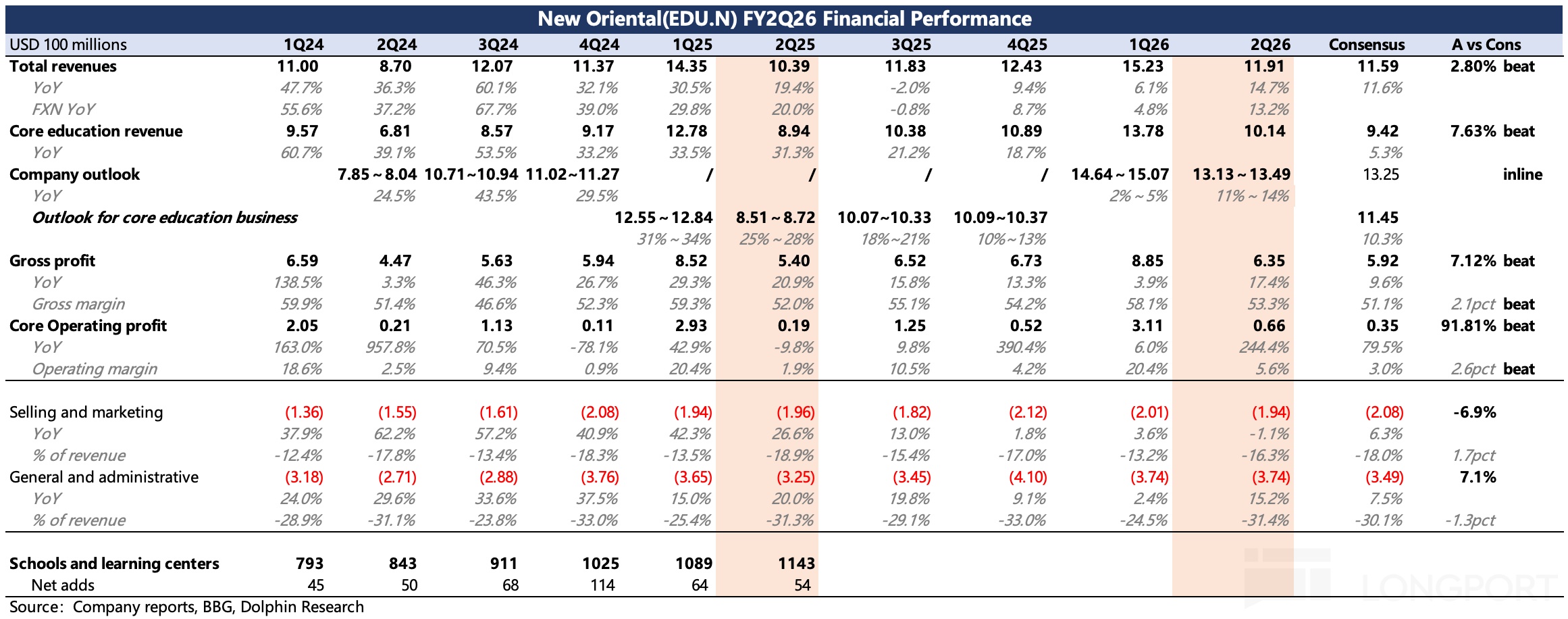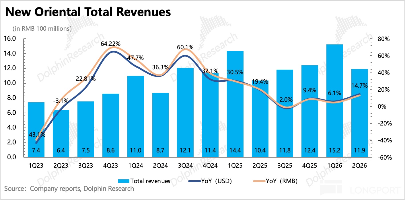 $新东方(EDU.US) 北京时间 1 月 28 日美股盘前发布了 2026 财年第二季度的业绩,对应的是自然年下 2025 年 9 月至 2025 年 11 月秋季学期的经营情况。