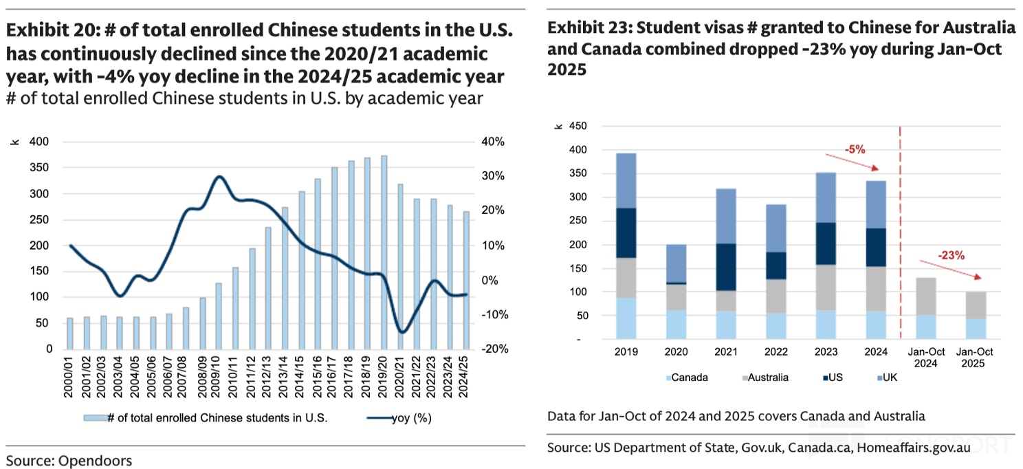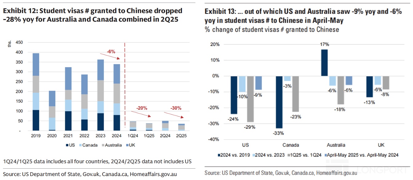 当然短期而言,我们跟踪学生签证的审批量情况,去年三季度美加地区的审批情况边际上稍有缓解,至少要比 4、5 月最恶劣的时候要好一些。此前管理层表示 27 财年也就是 2026 自然年留学业务将不会对集团利润有拖累,这里面不仅有收入影响缓解的预期,主要是这部分业务中还有对支出严控带来的拉动。