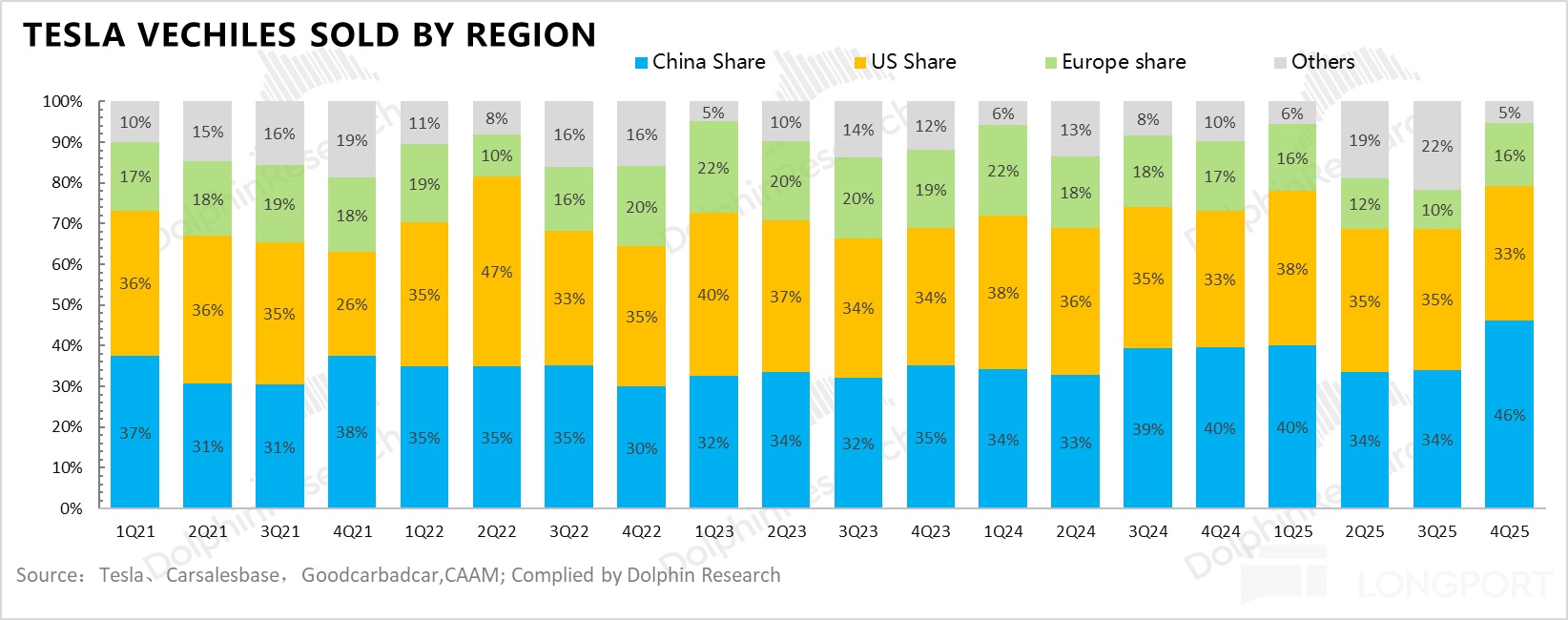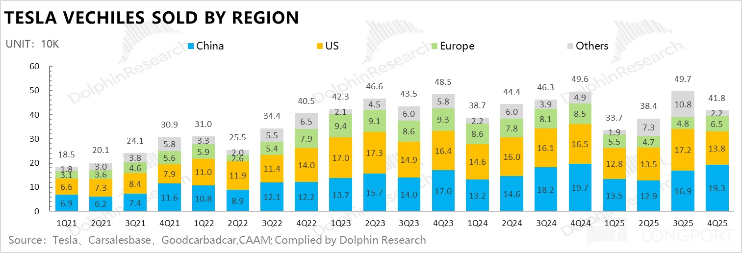 ① 中国市场:四季度是Model Y L的完整交付月,同时四季度中国市场有因2026年购置税退坡的抢购效应,以及传统旺季,特斯拉在中国零售销量还在环比上行。