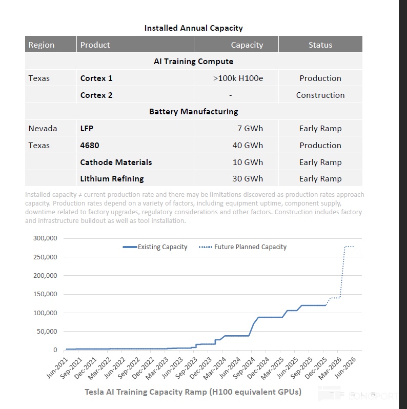 ② 为支持 Optimus 与自动驾驶训练,公司正大幅增加算力投入(特斯拉正在德州工厂建立cortex 2, 预计2026年上半年将计算资源规模再提升到当前的1倍以上,预计相当于超25万的等效H100水平);
