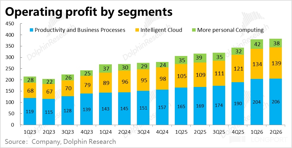 消费者 M365 业务的情况类似,在提价的拉动项,收入增速达到 29%。因此,本季生产力流程板块的整体的营收增速为 15.9%,较上季略有降速,依然小超卖方一致预期和公司指引。