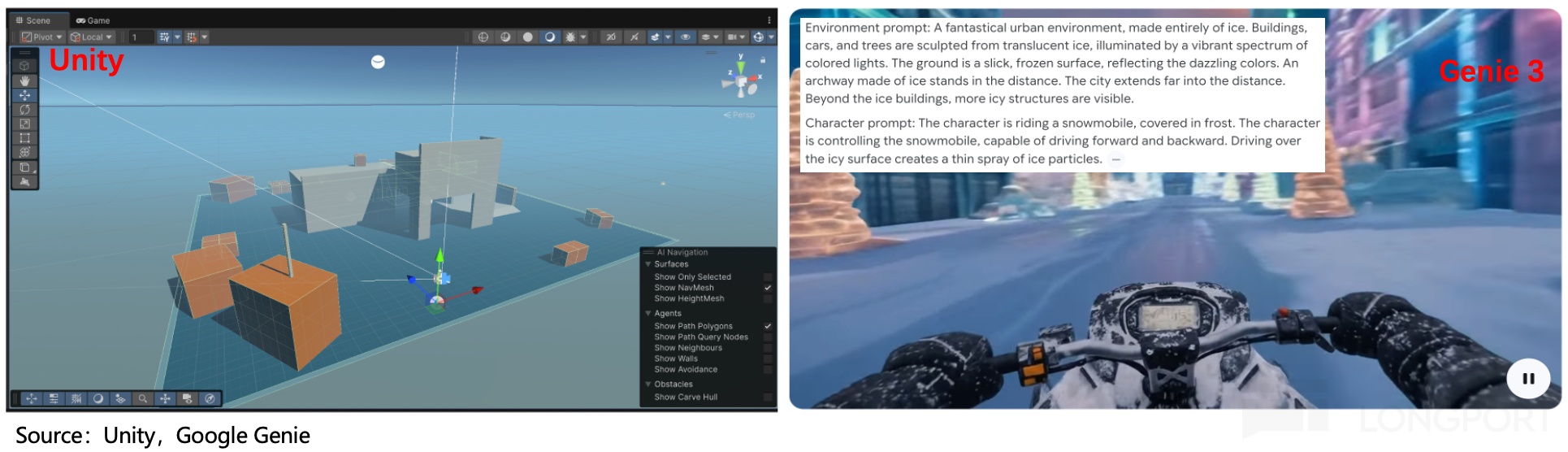 我们不会将世界模型视作风险,反而视为加速器。原因在于,世界模型提供了丰富的初始游戏场景这个内容资产,随后再通过 Unity 的确定性系统进行优化(结构化、确定性和完全可控的物理模拟)。在此,我们的 Agentic AI 已经能够实现将静态视频输入输出为一个高质量场景。
