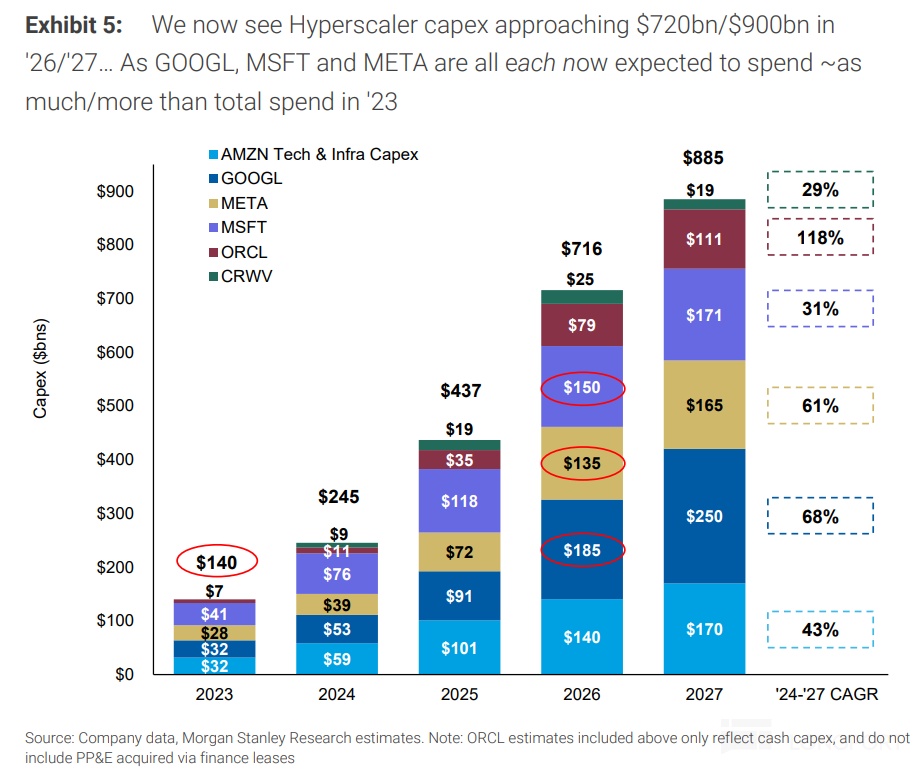 而让市场担忧的更大问题是--公司指引 26 财年总 Capex 将达$2000 亿,在 25 年全年的不低基础上再增长 50% 以上!也远超目前其它所有云巨头的 Capex 预算(约在 1500~1800 亿之间)。