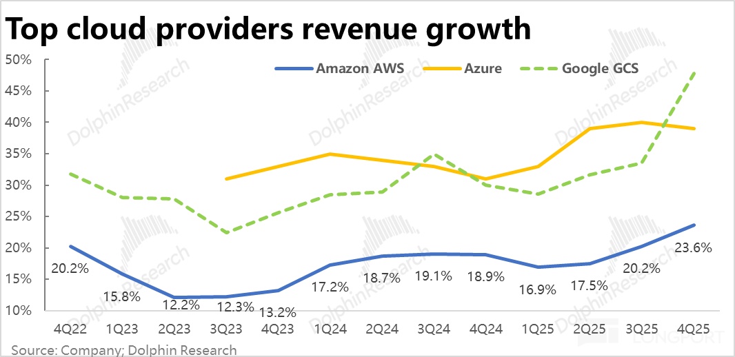 结合业绩前的报告,近期 AWS 的提速,主要归功于算力供应瓶颈有所缓解(Capex 的拉升,和自营芯片的出货),以及和 Anthropic、OpenAI 等大客户合作的贡献。