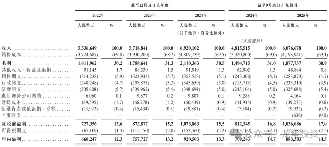 22 年净利6.60 亿,23 年净利7.58 亿,24 年净利9.21 亿,2025 年 Q3 净利8.83 亿,上年同期净利7.09 亿,同比增长24.54%。