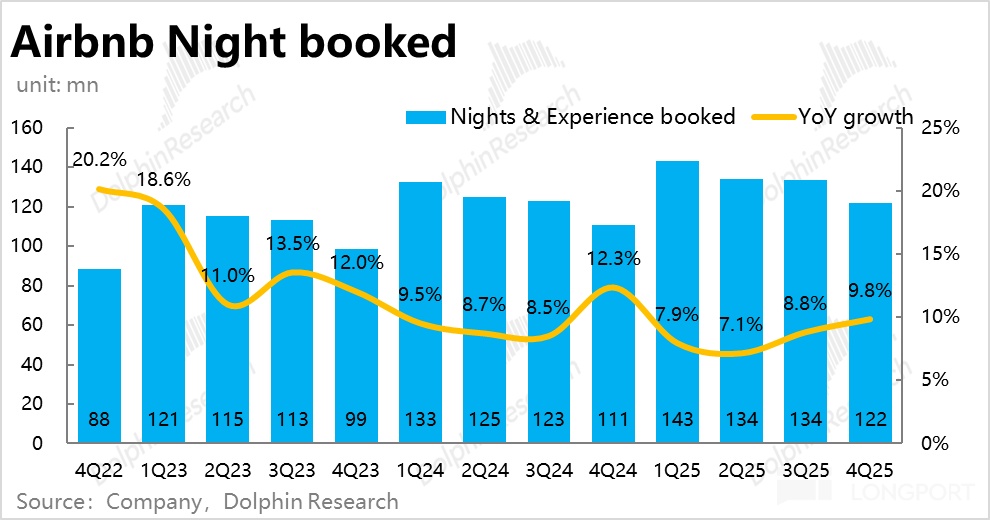 价量驱动上,更关键的量--总间夜预定量同比增长 9.8%,较上季加速约 1pct,同样是 25 年内的单季最高,远好于此前中个数% 增长的指引。
