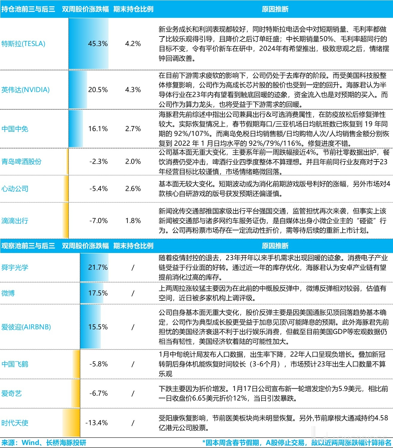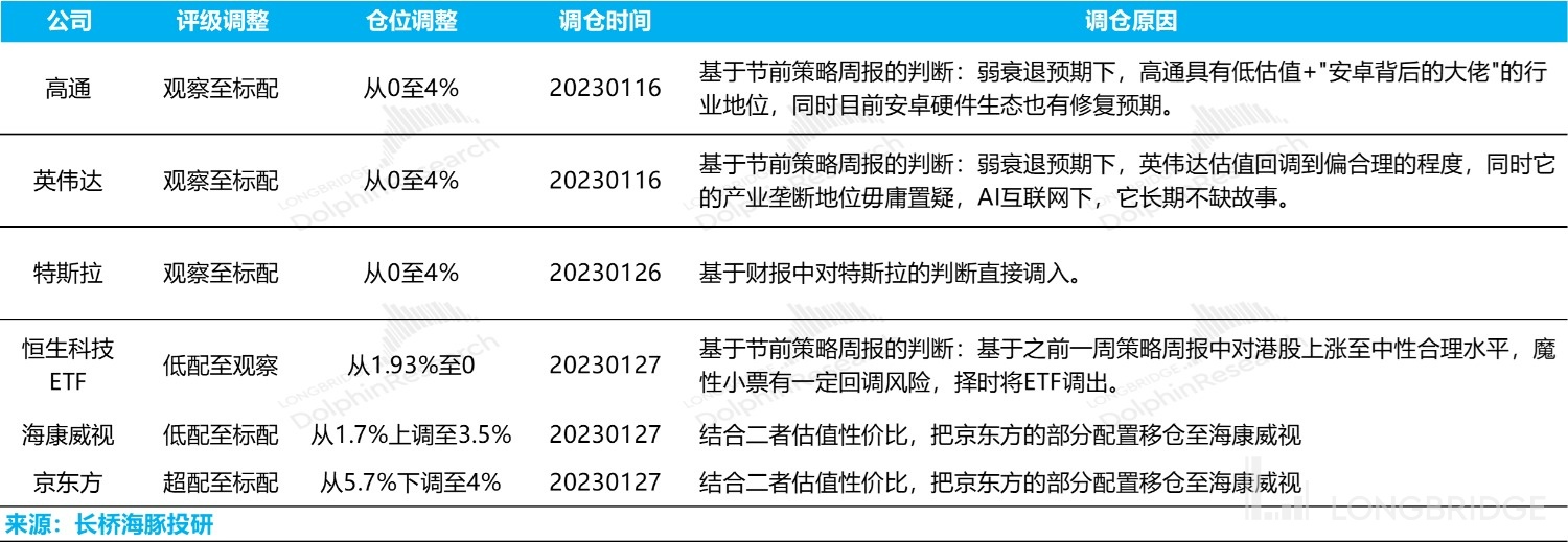 4)海豚君基于上次策略周报中美国经济弱衰退的判断,组合及时加仓了海豚君观察仓中的美股半导体龙头——高通和英伟达,并基于财报点评判断,加仓特斯拉,这些调仓单周都贡献了不错收益。