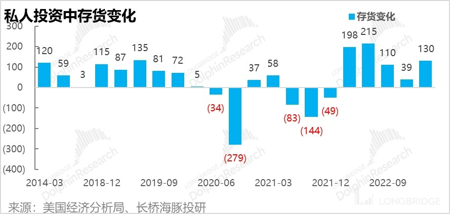 细看 GDP 环比增长的驱动分项,真正意义上贡献大的板块,除了内需中的服务消费,就是私人投资细分项目中库存的增加。