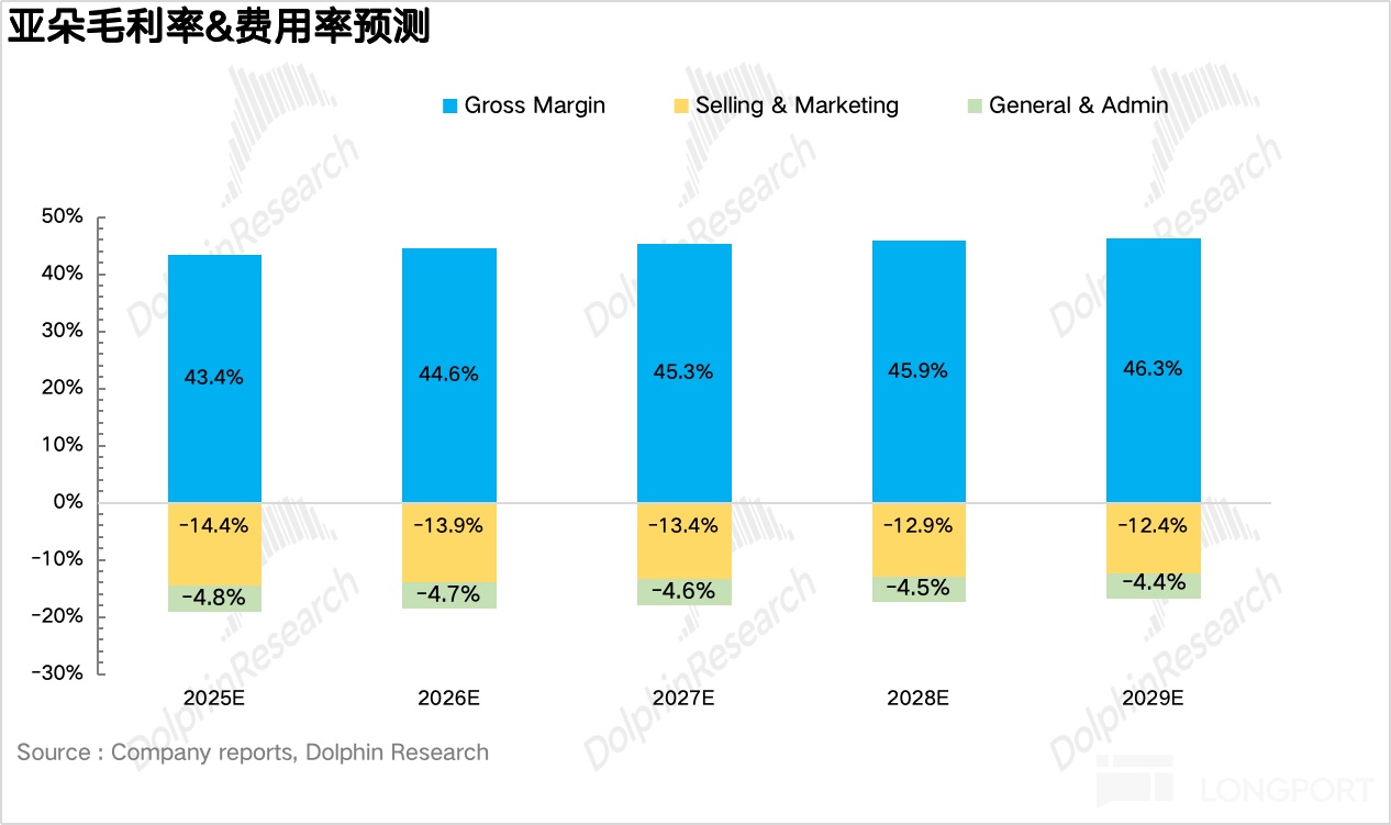 毛利率上,对标华住,伴随亚朵未来轻资产加盟模式占比的进一步提升以及成本控制&运营效率的优化,酒店业务毛利率从 36.4% 提升至 38.4%;此外,伴随规模效应的释放、产品结构的升级迭代,零售业务毛利率从 53.4% 提升至 55.4%,对应集团整体毛利率从 43.5% 提升至 46.3%。