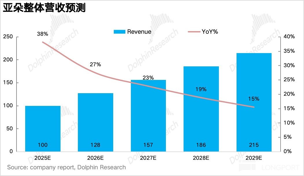 基于以上分析,虽然亚朵在记忆枕赛道差异化定义了 “深睡枕” 的标准,具有品牌心智上的先发优势,但考虑到传统家纺品牌迅速跟进后竞争明显加剧,海豚君假设到 2029 年亚朵星球的市占率从 12% 小幅提升到 15%(每年提升 1pct),对应 39 亿元。