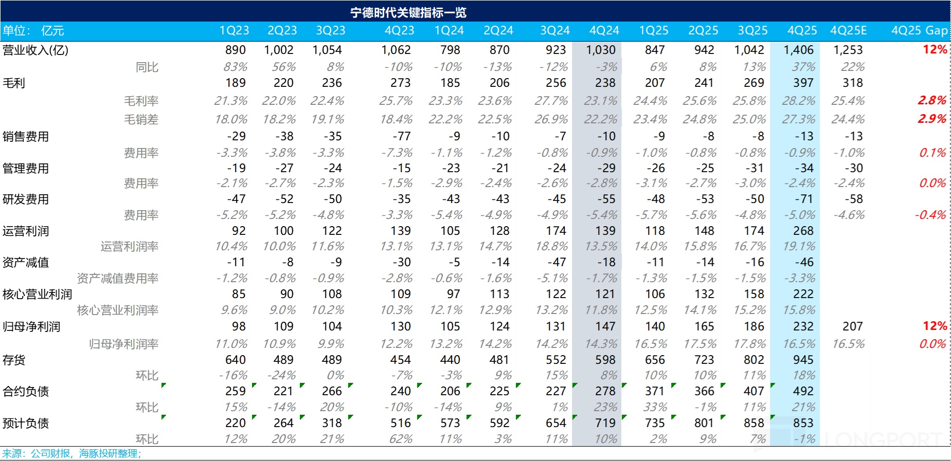 2025年四季度单季收入1406亿,同比增速已经达到37%,也充分验证了锂电的上行周期的启动,同样也大幅高于市场预期的仅1253亿,而超预期的核心仍然在于出货量继续高增,但单价端仍然保持稳定。