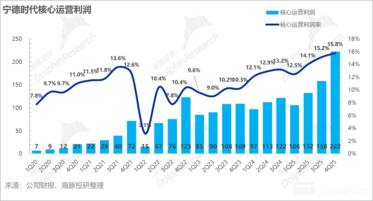 而海豚君更关注的核心运营利润率趋势(毛利率-三费-资产/信用减值损失率),四季度222亿元,同比增速高达83%,核心运营利润率也达到15.8%,环比仍然上行0.6个百分点。