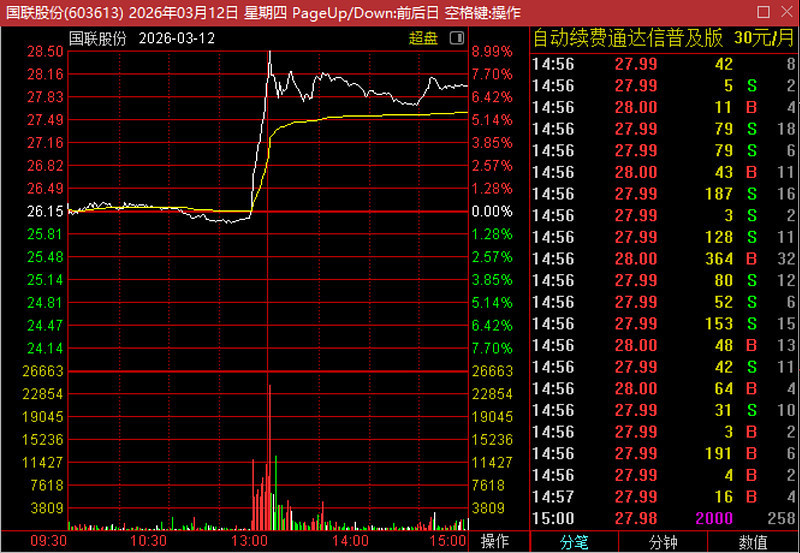 这是周四国联的日 K 线,临近午盘突然的火箭般拉升接近涨停,下午有些许回落却整体运行在均线上方。总结了一下大涨的可能性,待会单独发一下。