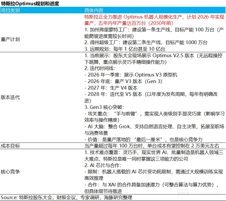 ① Optimus:V3亮相延期至年中,2027年迎规模化量产元年