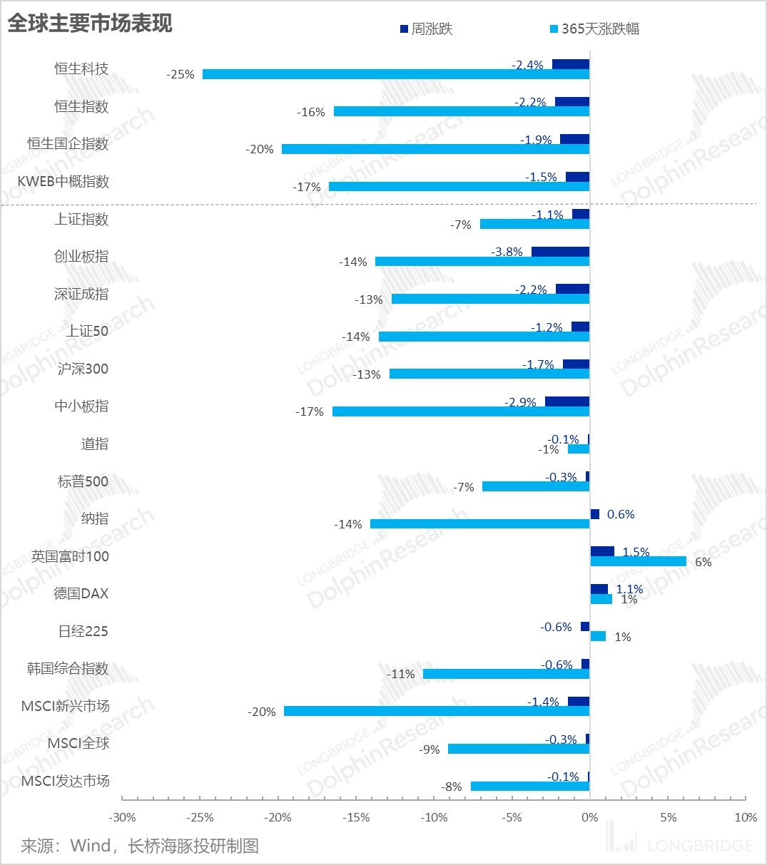 出于对滞涨,以及加息可能需要更高的担忧,上周在无风险利率走高过程中,全球市场除欧洲之外,基本以跌为主,越是成长风格的市场,跌幅也就越大。