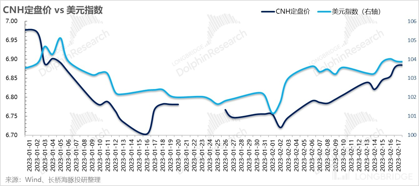 这周主要宏观数据是北京时间周五晚的美国 1 月 PCE 数据。经过此前 CPI 和 PPI 的双杀之后,PCE 如果同样显著超出市场预期,那么市场对加息的终点可能再次抬高。