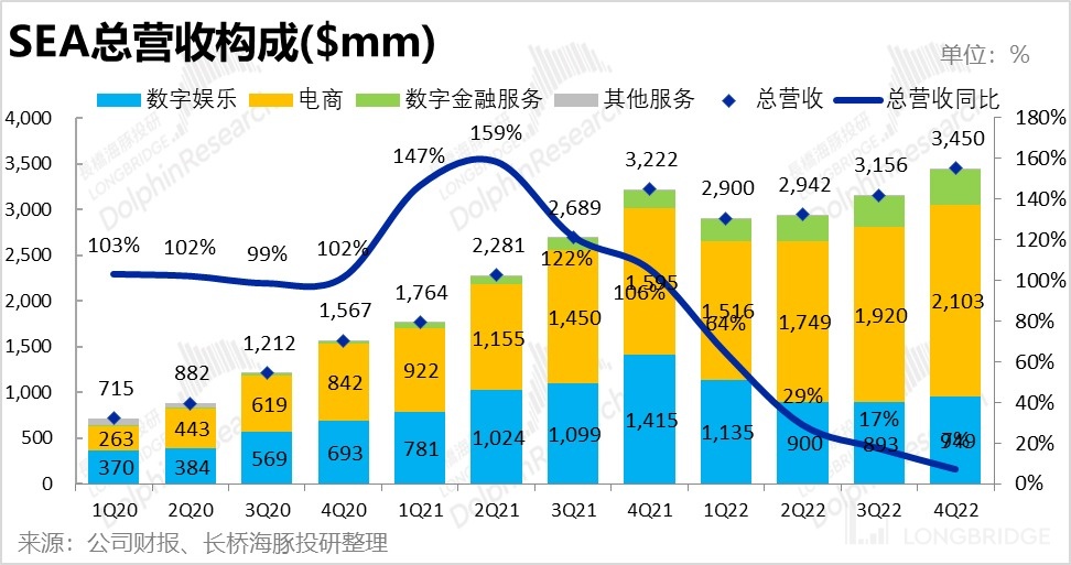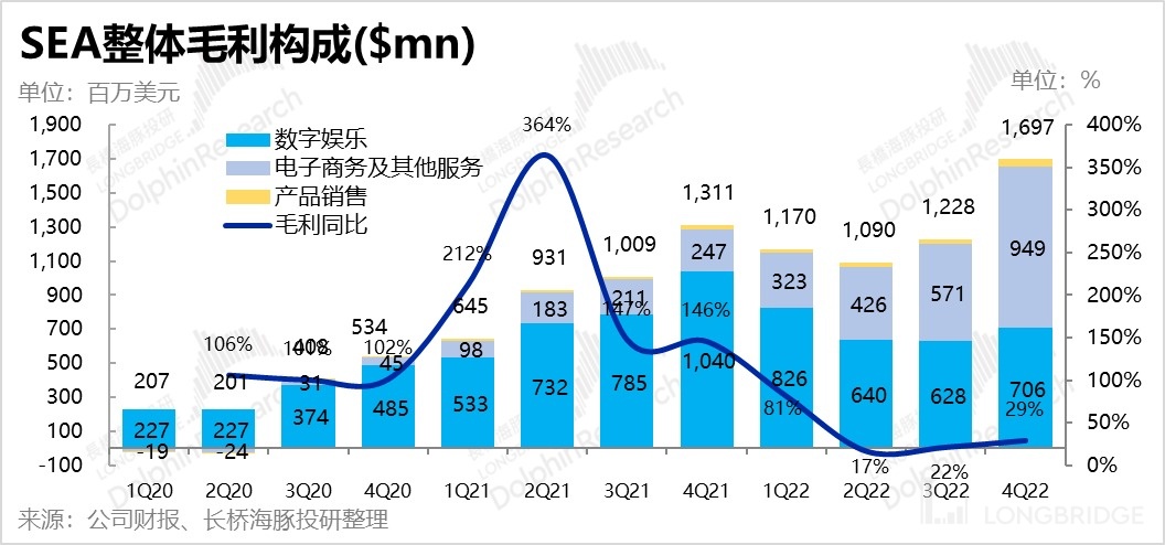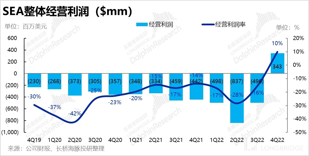 由于 Garena 游戏板块已经烂透,集团先前整体的现金流状况也岌岌可危,何时能利润扭亏几乎是公司和市场唯一的关注点,因此我们此次对 SEA 的业绩点评也会优先从盈利角度出发,至于营收增长则相对次要。