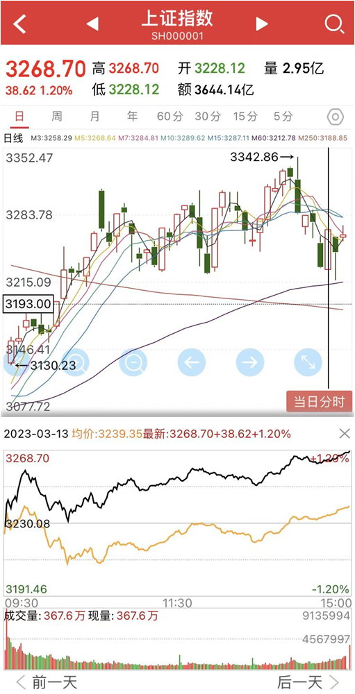 下面我们以 3 月 13 日上证指数跟大家举例说明: