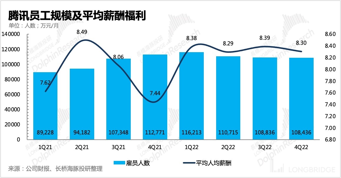 不过,从绝对值的变化上,代表主业经营情况的核心经营利润在低基数上同比增长 30%,还是符合预期的,这样趋势在今年,尤其是上半年还将延续。截至年末整个集团员工规模 10.84 万人,环比净减少 400 人,平均薪酬福利保持稳定未见季节性下降,可能与海外员工人工成本较高有关。从裁员的进度来看,仍然有优化空间。