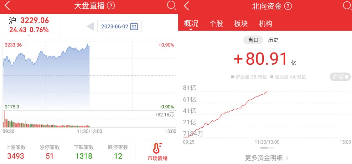 午盘展望今日市场高开高走,全市上涨家数近 3500 家。早盘北向资金则大幅回流 80.91 亿,盘面人工智能、VR/AR/MR、锂电池较为活跃,新能源板块迎来反弹。短线情绪方面则迎来分歧,连板高度再度下降至 4 连板,连板晋级率低迷,资金高低切换较为明显。而截止早盘大幅回撤个股为 3 个,亏钱效应暂时并未大幅增加。目前在市场普遍反弹的背景下,观察活跃方向(人工智能、VR/AR/MR)能否抗住分歧继续走高。