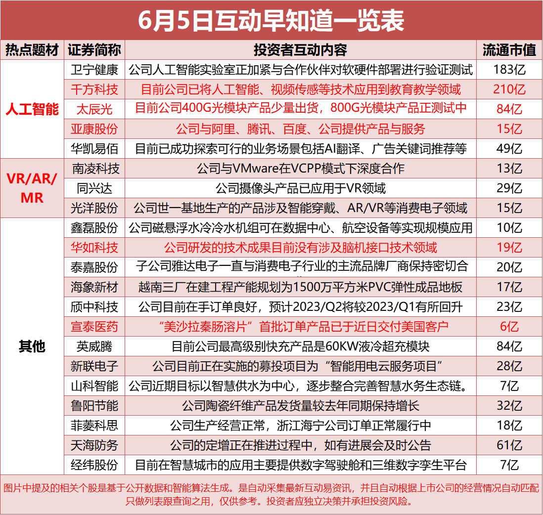 根据今日热点,互动精选出今日投资者互动平台的热点题材主要有:人工智能、VR/AR/MR。