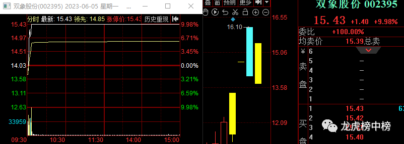 高开高走缩量板,龙虎榜前买五买进总金额不算特别大,人气依然无敌,一点就上去。这里这么好的人气也不轻易言顶,只要行情没有大崩盘,这里有仓位的话还可以多拿一下,没有仓位的可能考虑分歧低点稍微干一点感受感受,但现阶段市场震荡为主,就不要猛追高位加速点。