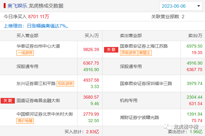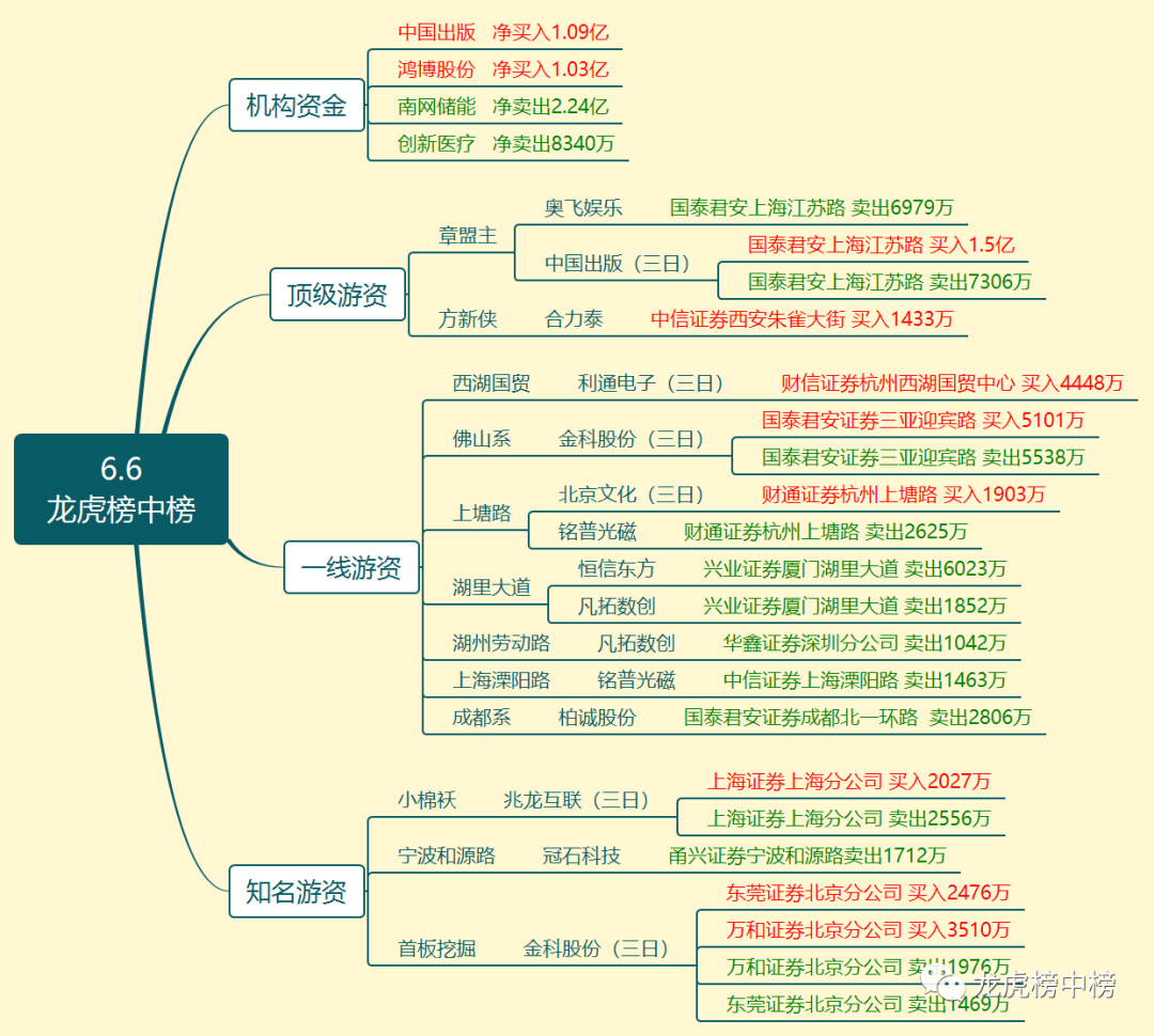 机构买入中国出版、鸿博股份,卖出南网储能、创新医疗;章盟主做 T中国出版(三日),卖出奥飞娱乐;方新侠买入合力泰;西湖国贸买入利通电子(三日);佛山系做 t金科股份(三日);上塘路买入北京文化(三日),卖出铭普光磁;湖里大道卖出恒信东方、凡拓数创;湖州劳动路卖出凡拓数创;上海溧阳路卖出铭普光磁;成都系卖出柏诚股份;小棉袄做 t 兆龙互联(三日);宁波和源路卖出冠石科技;首板挖掘做 t金科股份(三日);指数大跌,情绪回踩低点。
