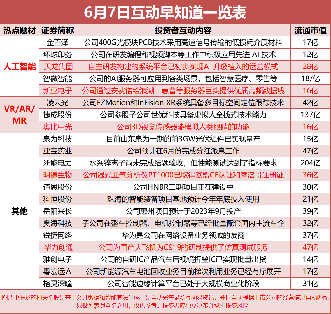 当日盘后重点公司 “互动早知道” 一览表: