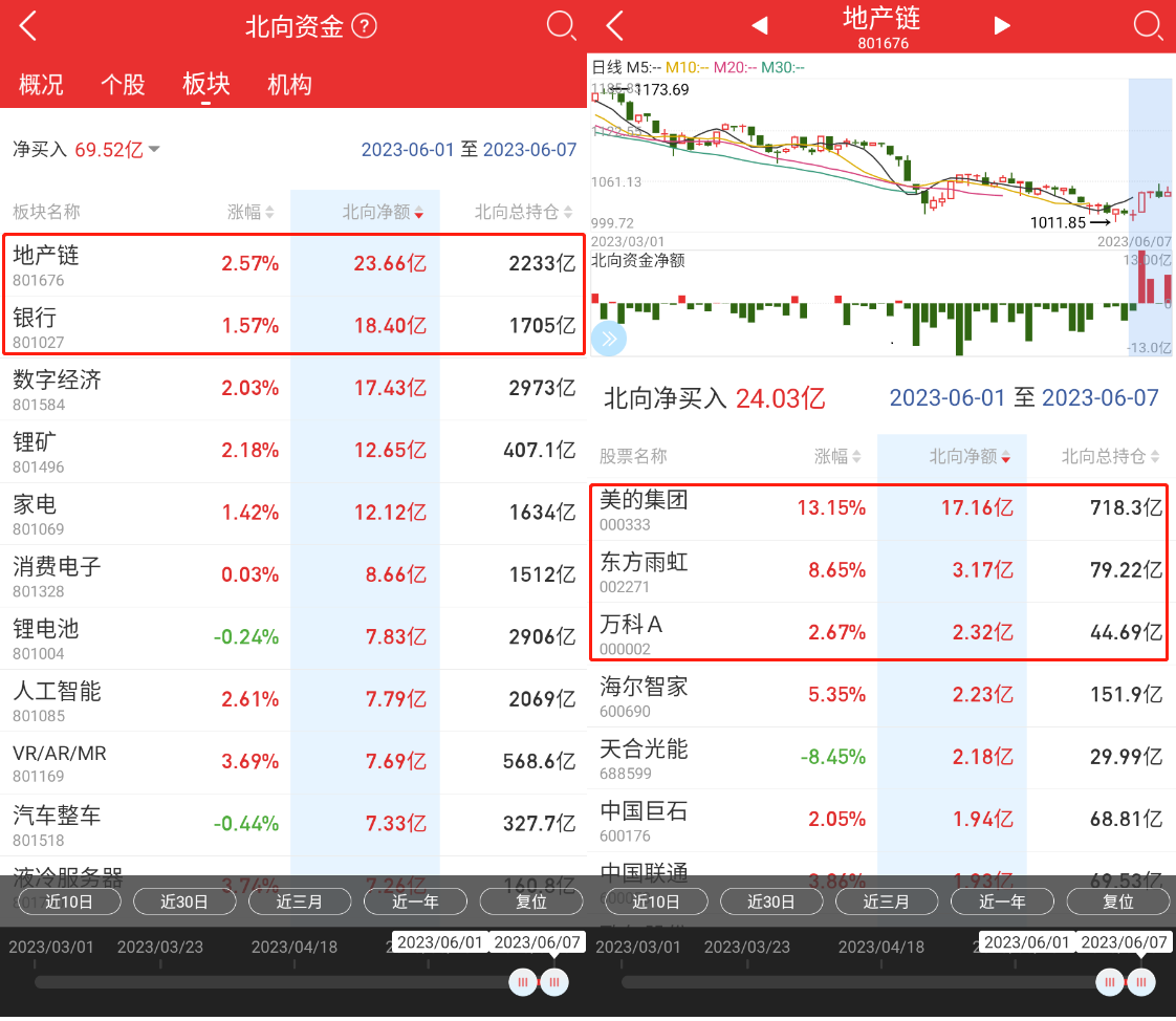 北向净买入(2023.6.1 至 2023.6.8)地产链前三名: