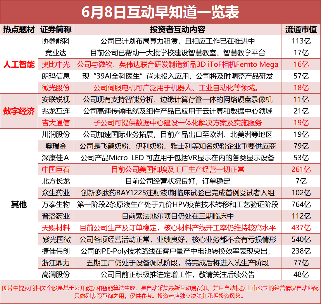 根据今日热点,互动精选出今日投资者互动平台的热点题材主要有:人工智能、数字经济。