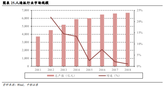 人造板泛指以木材或其他非木材植物为原料,经机械加工分离成各种单元材料后施加胶黏剂,再组合压制形成的板材。人造板可以提升木材的综合利用率,1 立方米人造板可以代替 3-4 立方米原木使用,更符合绿色环保的理念,其兼具价廉、质优、外观优美、加工性高等优点,在建筑、家具和包装等行业广泛使用。
