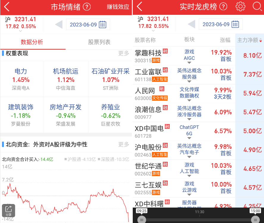 总的来说,今日指数端呈现窄幅震荡的走势,短线情绪端快速回暖,两市涨停个股的数量也明显增多。同时今日市场迎来了久违地放量反弹,AI 主线再度与指数形成共振。整体而言,在经历今日的上涨后,市场短期呈现出止跌企稳的迹象,结合国内财新 PMI、市场政策预期加强,海外美债上限风波平息情绪缓和等消息层面催化,尾盘 “中特估” 方向亦有资金抢筹,市场的反弹预期有望提升,可继续留意热点轮动过程中核心个股的低吸机会。观察近期活跃的人工智能、“中特估” 等方向前排核心的后续资金承接力度,注意把握短期市场轮动节奏。