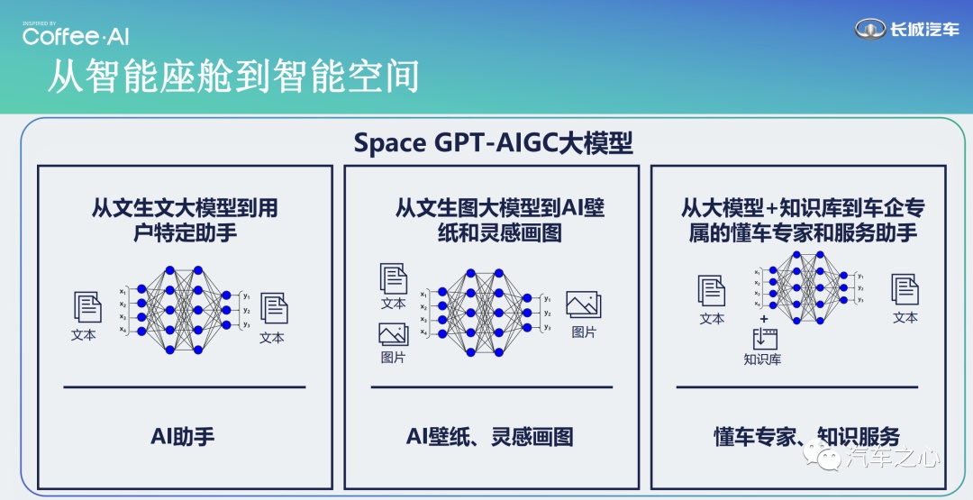 长城这一次做了 Space GPT 的三种模型:感知大模型、认知大模型和 AIGC 生成式大模型。