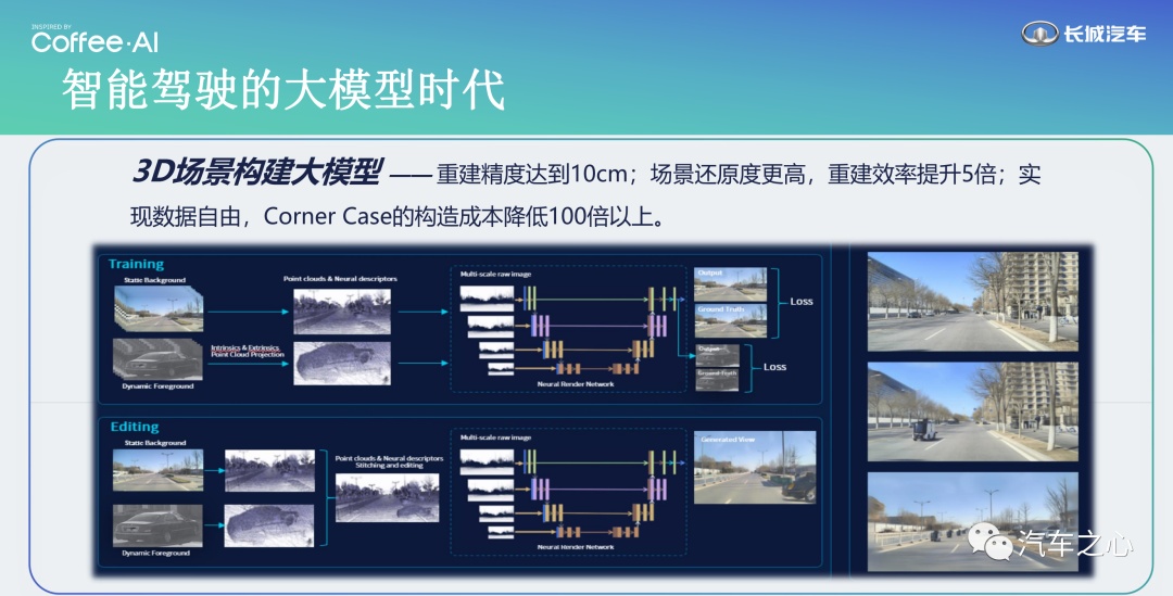 通过 3D 重构加上自动插入目标物范式,重建精度可以达到 10cm,这也使得场景还原度、重建效率更高,面对 Coner case 的构造成本也降低了百倍以上。