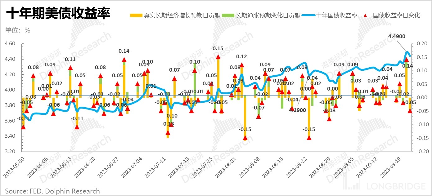 1)上周,除了美联储 “鹰派” 的 Higher for Longer 的高息常驻预期之外,真正压力大其实是无风险收益率 2007 年以来首次再碰 4.5%。