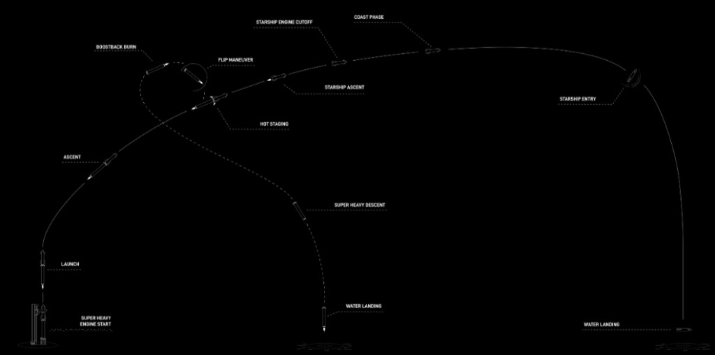 第三次試飛的總體流程是,星艦在起飛後,需要進行 “超重” 推進器和星艦飛船的分離,隨後 “超重” 推進器將試圖在水面上着陸,而星艦飛船將繼續展開一系列新測試,最終在受控的情況下落入印度洋。根據官方公佈的時間表,假設一切順利,整一套流程需要 64 分鐘左右。