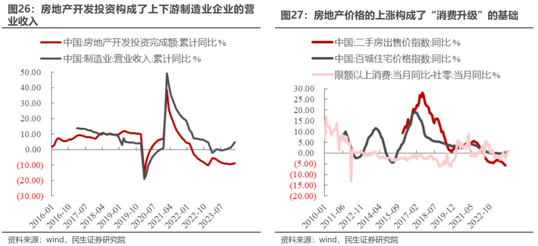 房地产之所以被称为“周期之母”,并非由于“房地产强,则周期行业强”,2010-2020年,房地产投资增速构成制造业的营业收入,房地产销售构成地方政府的信用扩张,房地产价格的上涨则给居民带来资产端的膨胀,带来消费的“升级”,因此房地产强,实则制造与消费强。正由于这一循环在2021年后被打破,产业驱动替代了负债驱动,我们才进入了一个资源为王的时代。