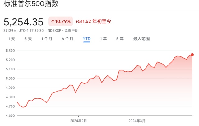 標普 500 指數在今年迄今曾 22 次創下歷史新高,一季度漲幅達到了 10.79%,AI 熱潮成為推升股市上漲關鍵力量,但影響力與 2023 年相比有所減弱。